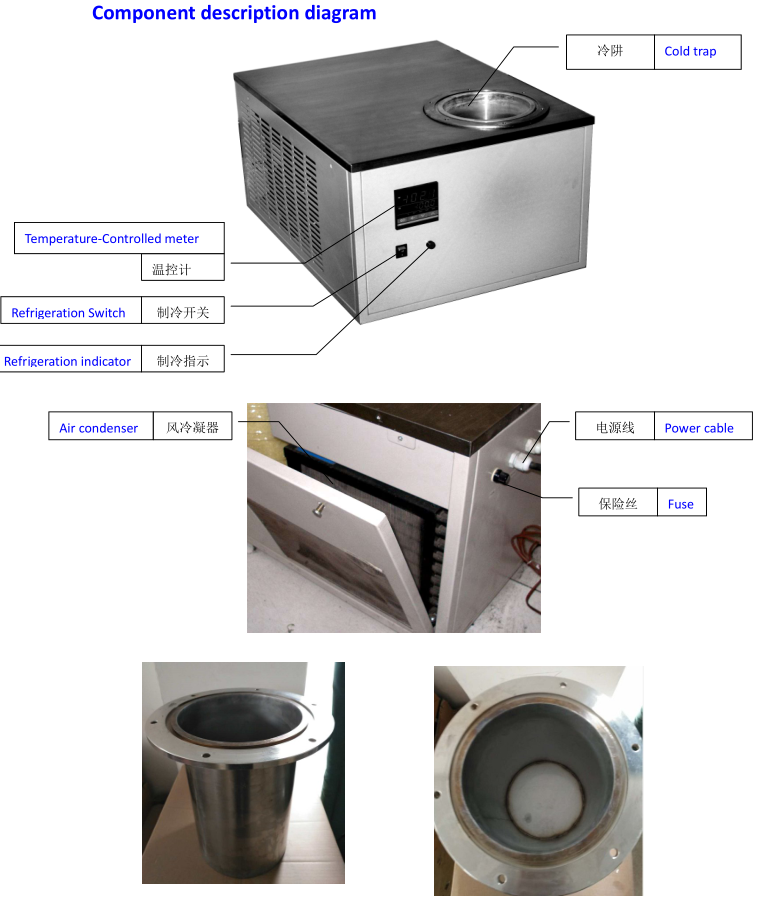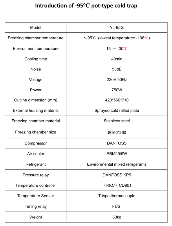 cold trap,biochemical petroleum experiment, low temperature liquid bath, gas trap, drugfreeze-drying and so on. There are two types of cold traps according to theirapplication method: pot type cold trap and bar type cold trap. The size of thecold trap, refrigeration mode can be customized according to the needs of theusers.